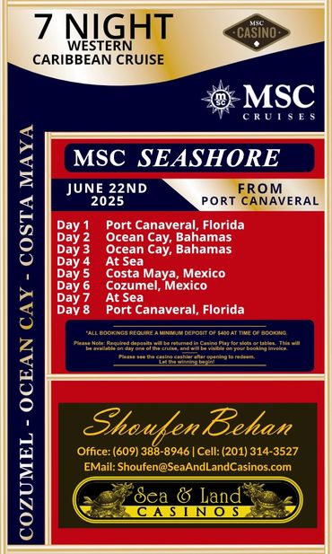 Shoufen Behan is a Licensed Independent Casino Marketing Representative for Premiere Resort and Casino destinations. She is commitment to customer satisfaction, which is her first priority. You can trust that you will be a satisfied guest at Sea & Land.